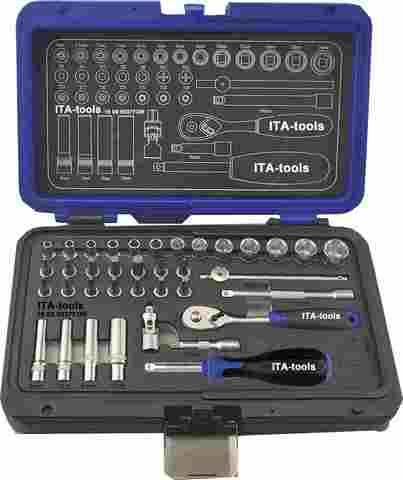 Juego de Herramientas Mecánicas de 55 Piezas con Dados de 1/4\" y 1/2\"