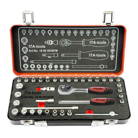 36 pcs 1/4 \ के साथ मीट्रिक सॉकेट रिंच सेट, रेटचेट हैंडल स्पिनर अनुकूलन योग्य मैकेनिक टूल सॉकेट सेट ओएम समर्थन