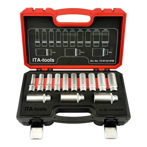 1/2 "डॉ। मीट्रिक आकार 13 pccs गहरे सॉकेट रंच सेट हाथ उपकरण सेट मैकेनिक उपकरण गहरी सॉकेट सेट अधिक हाथ उपकरण