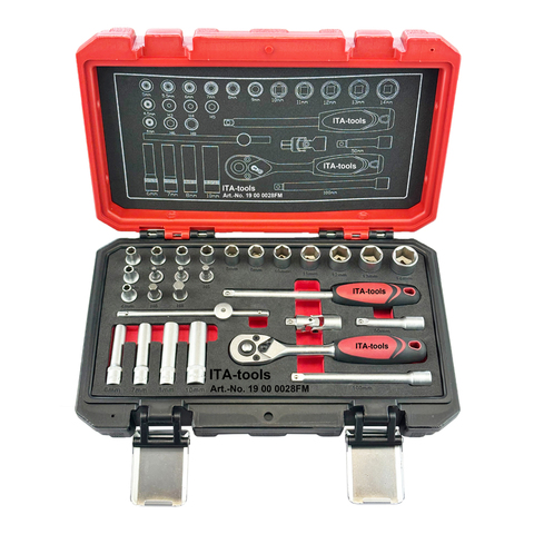 1/4 "डॉ। मीट्रिक आकार 28 पीसी सॉकेट रंच सेट हाथ उपकरण सेट मिश्रित रैचेट हैंडल और स्पिनर हैंडल